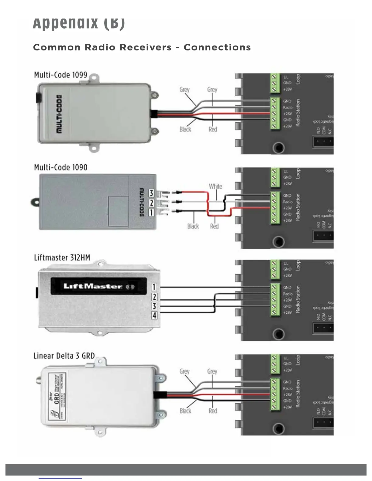 Viking Access Systems Q-7 - APPENDIX (B); Common Radio Receivers Connections
