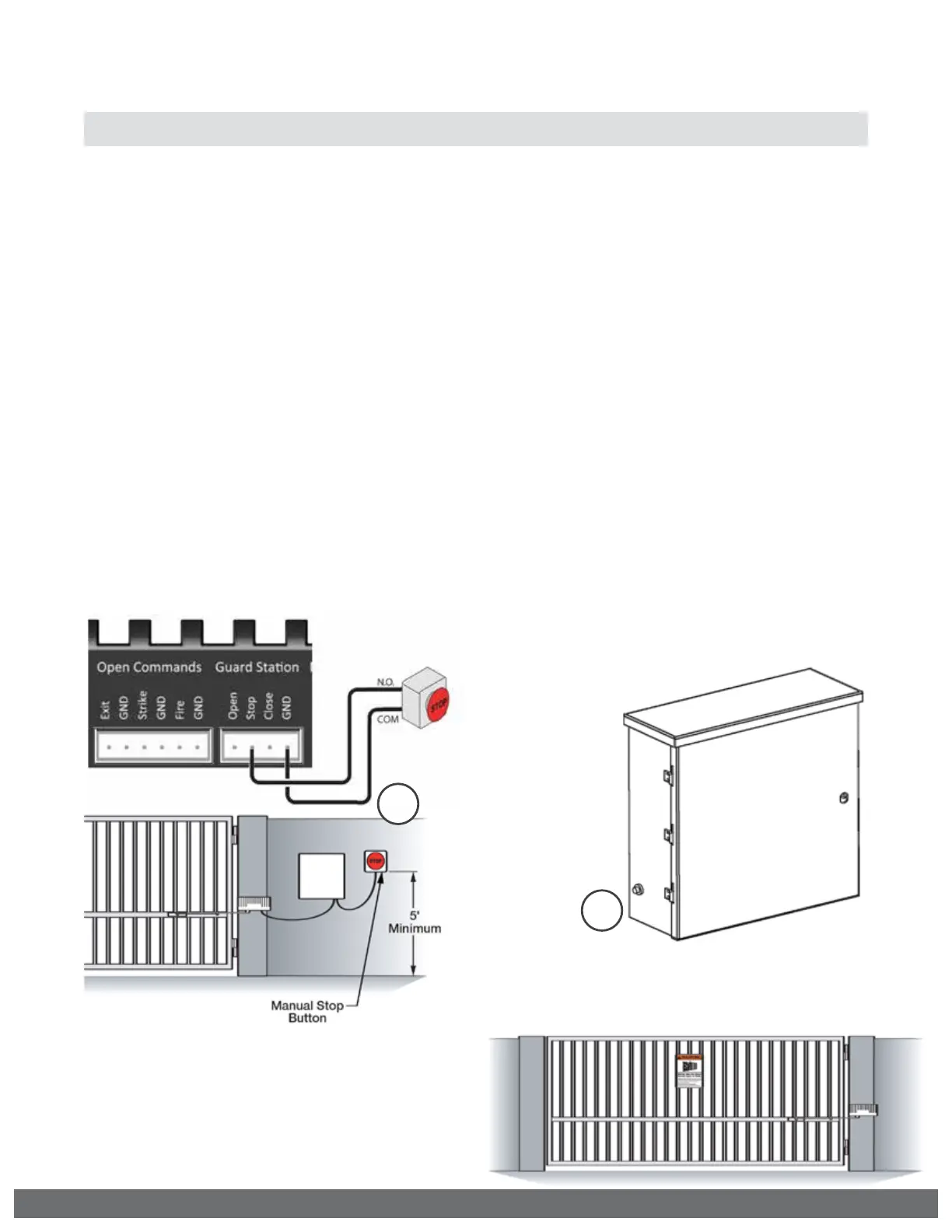 The Stop and/or Reset button must be located in the line-of-sight of the gate.