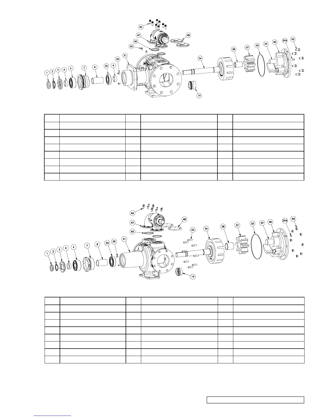 4 Bearing Spacer Collar 36 Rotor and Shaft Assembly 46 Capscrews for Relief Valve