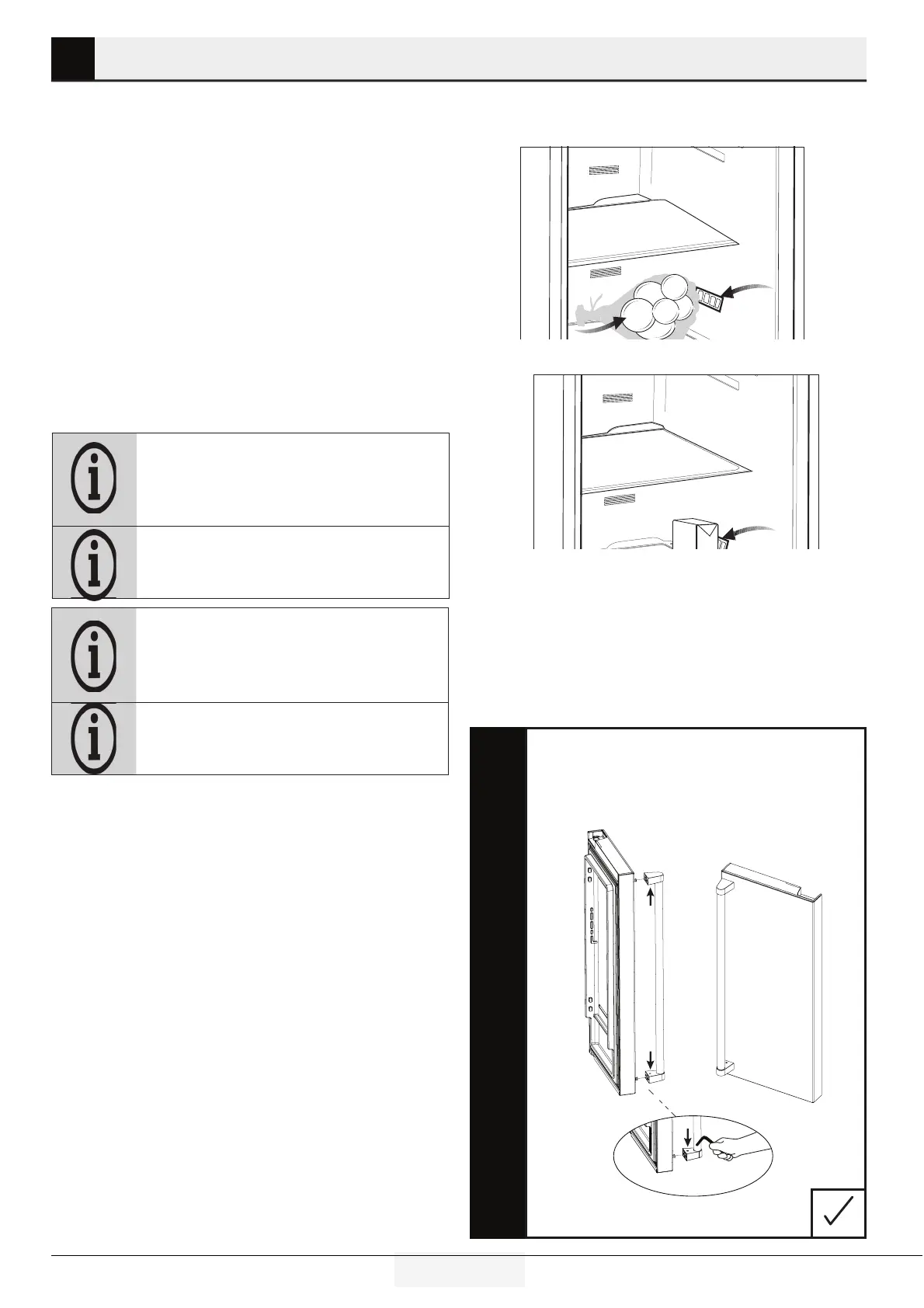 • Run the refrigerator without putting any food for 6 hours and do not