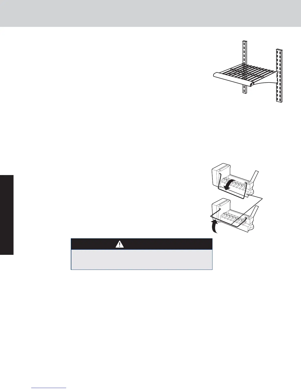 at the front until the hooks drop into the slots. Next, lower the front of the shelf to a level