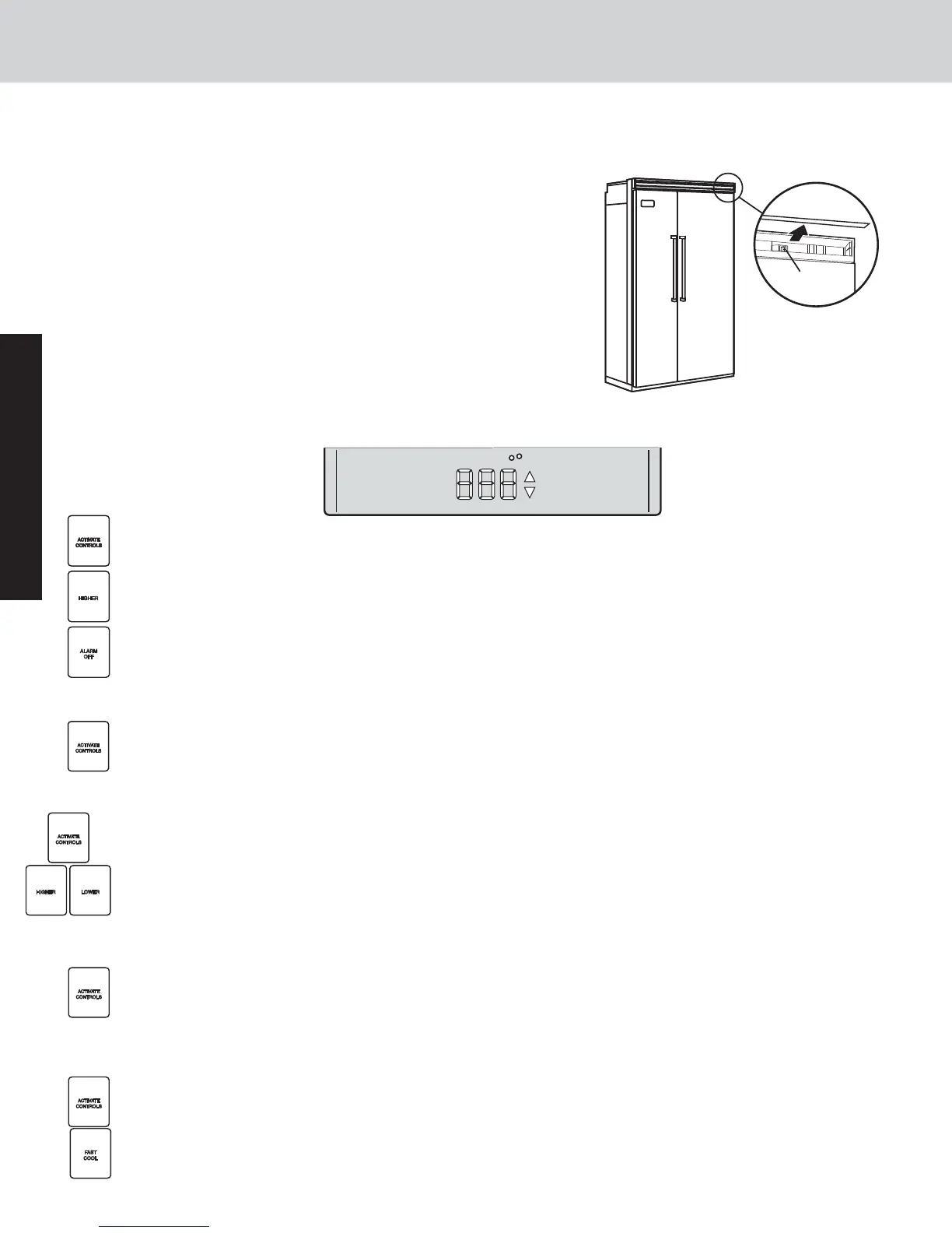 “Frz Temp” pad. Press the “HIGHER” or “LOWER” pad to adjust temperature setting one degree at a time.