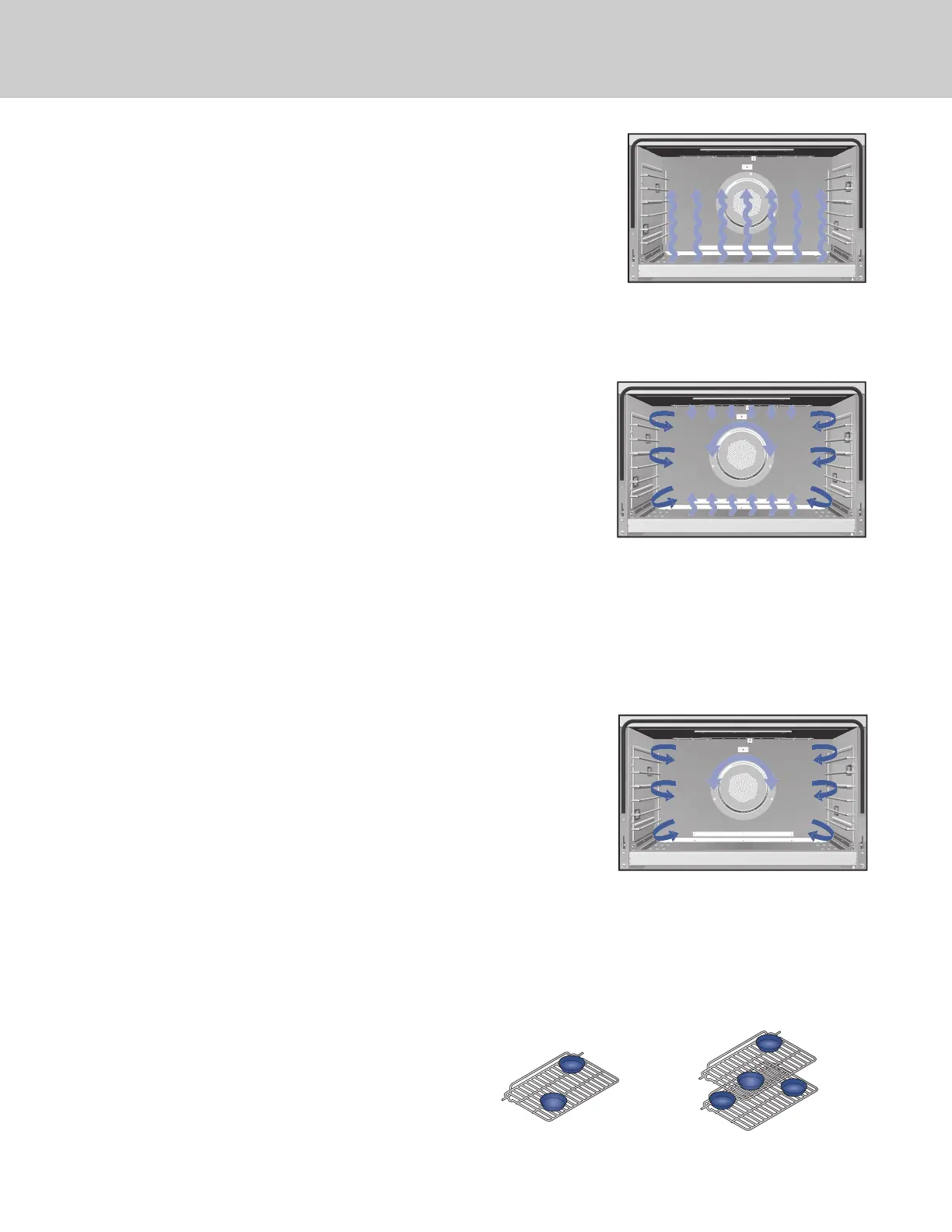 or top elements. The motorized fan in the rear of the oven circulates air in the oven