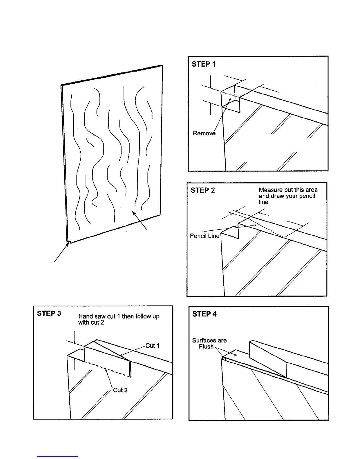 NOTE: Steps below show panel upside down and notched for a left hinge application. Overview of door and notch