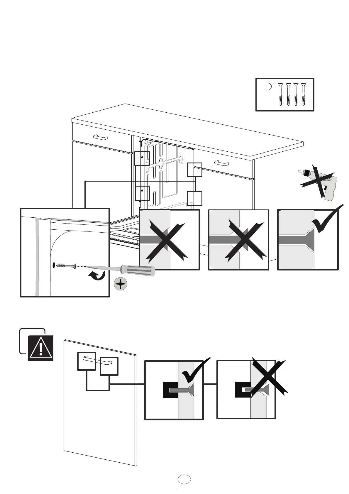 méthode consie à xer le lave-vaisselle à l’aide de 4 vis sur le côté dans l’armoire.