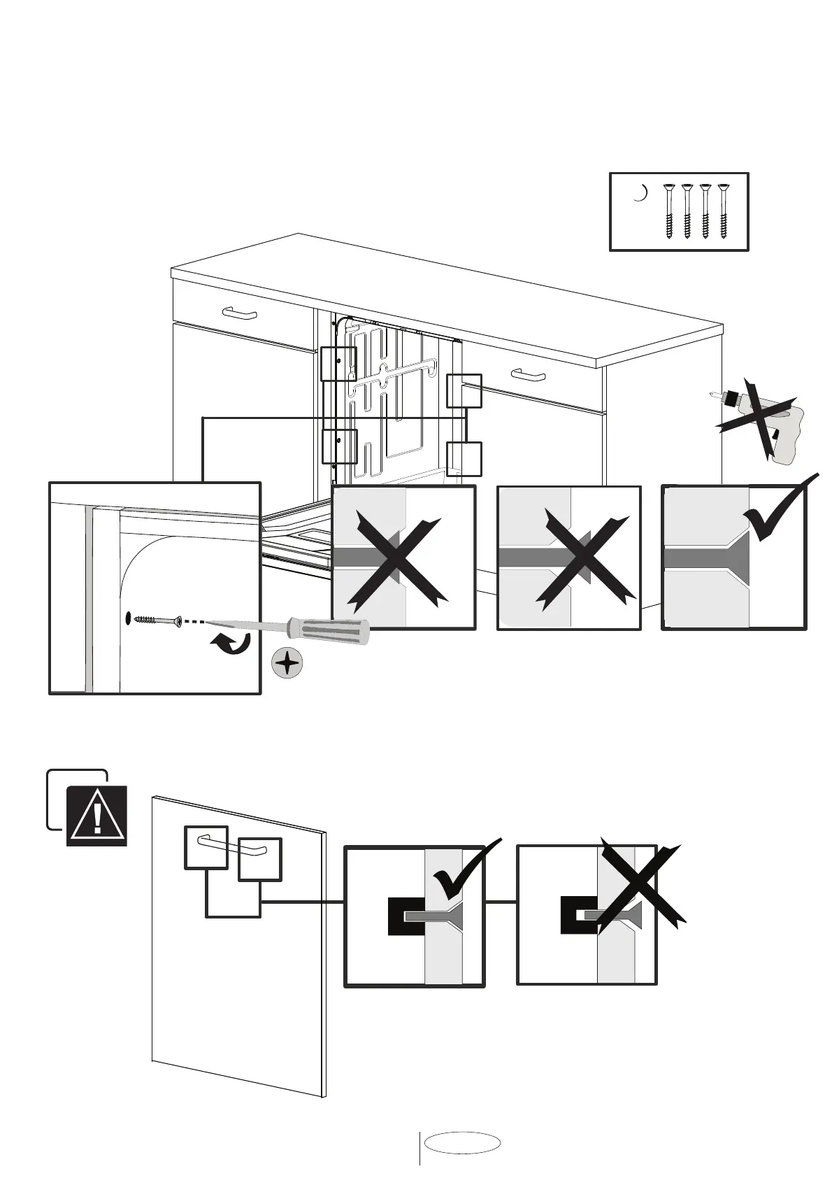 asegurar el lavavajillas con 4 tornillos a través del coado del gabinete.