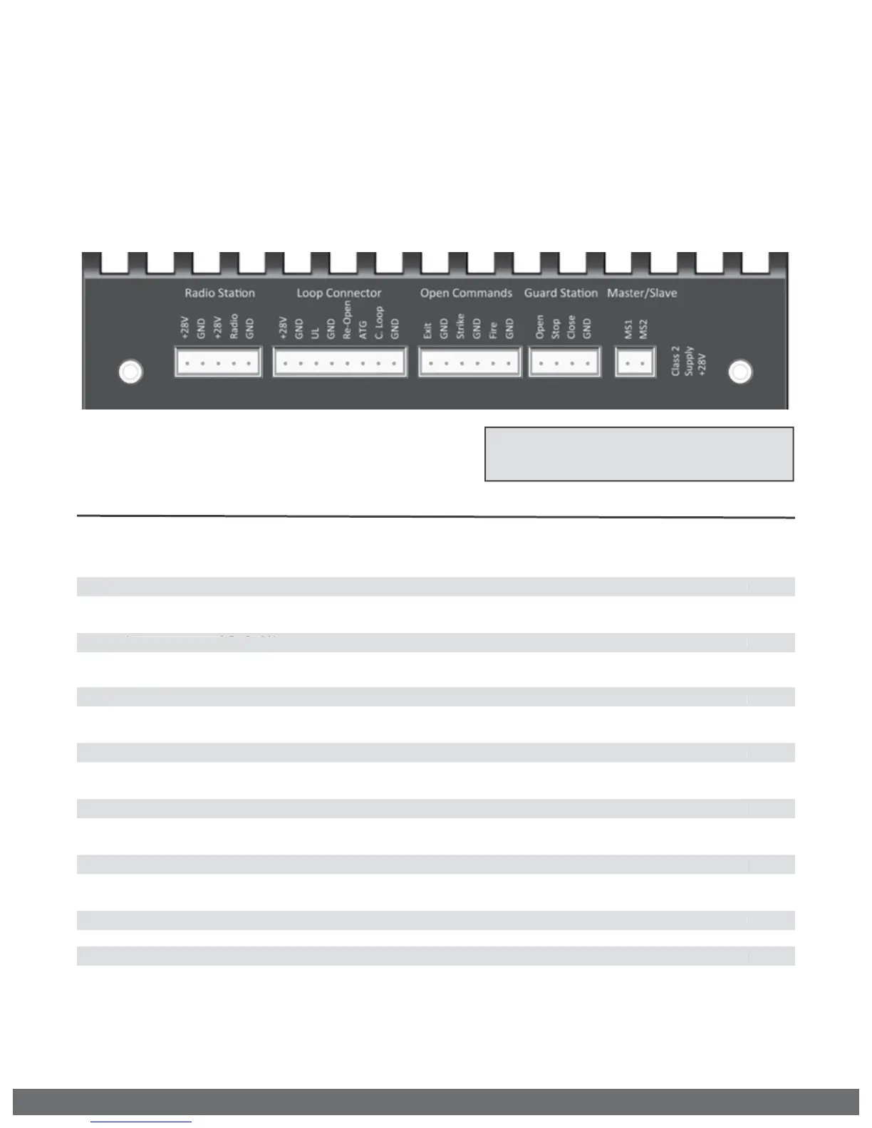 ! TECHNICAL TIP: Each input Terminal (i.e. Radio, Exit, Re-Open, UL) has a corresponding
