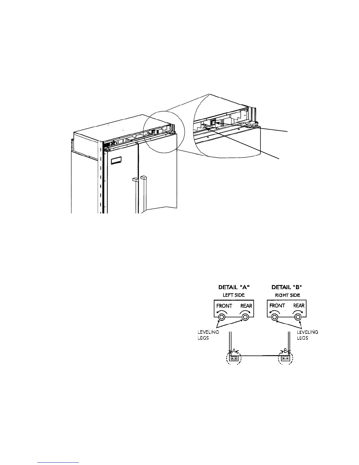4. Lift the refrigerator off the rollers, adjust to desired height and level refrigerator by using a 5/16” hex head wrench.