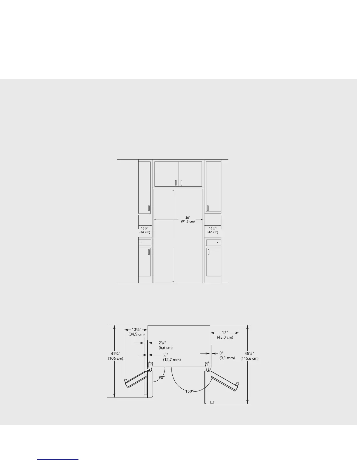 ⁄4” (34 cm) entre le mur latéral et le côté du compartiment de congélation.