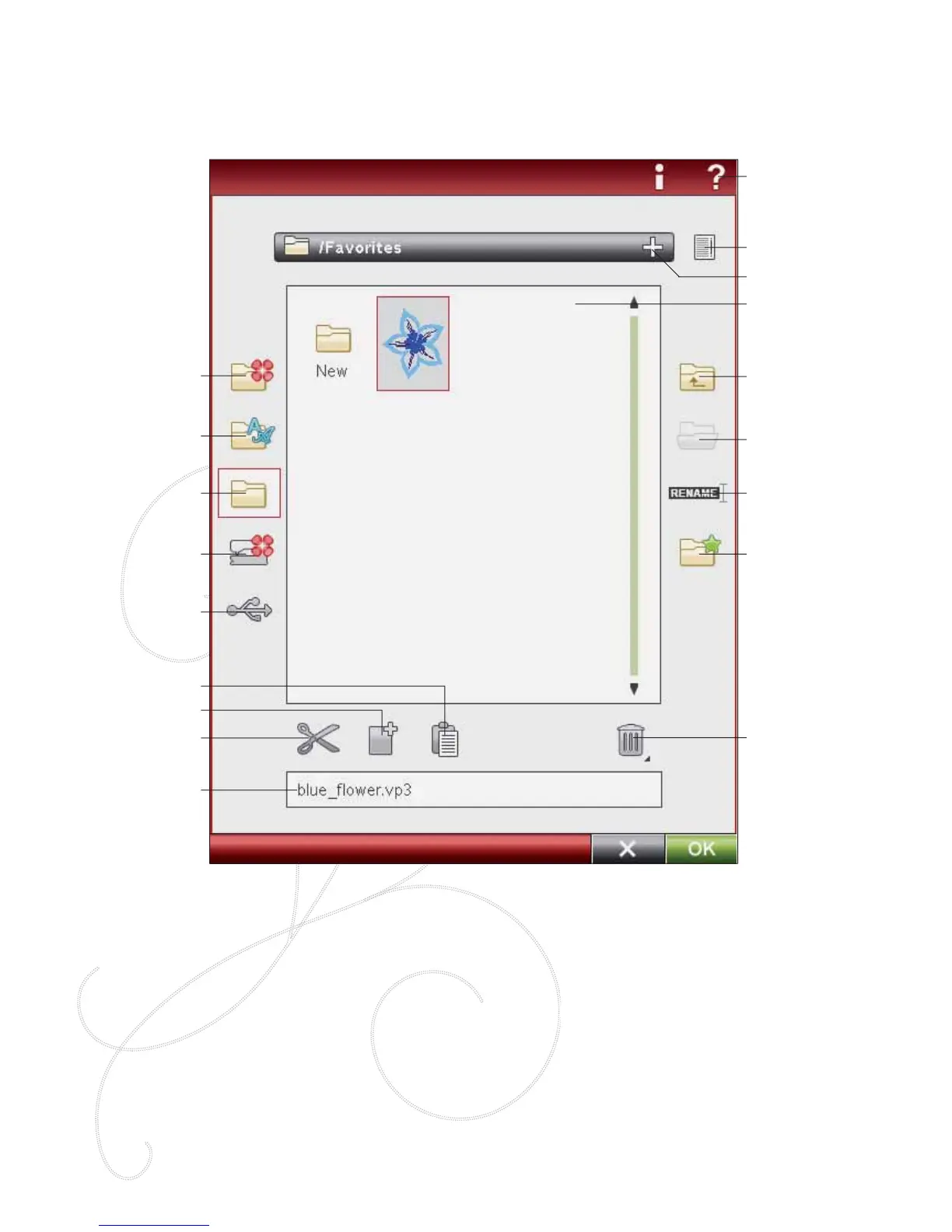 The File Manager is used to open, organize, add, move, remove and copy your designs, fonts and stitch À les. Use either