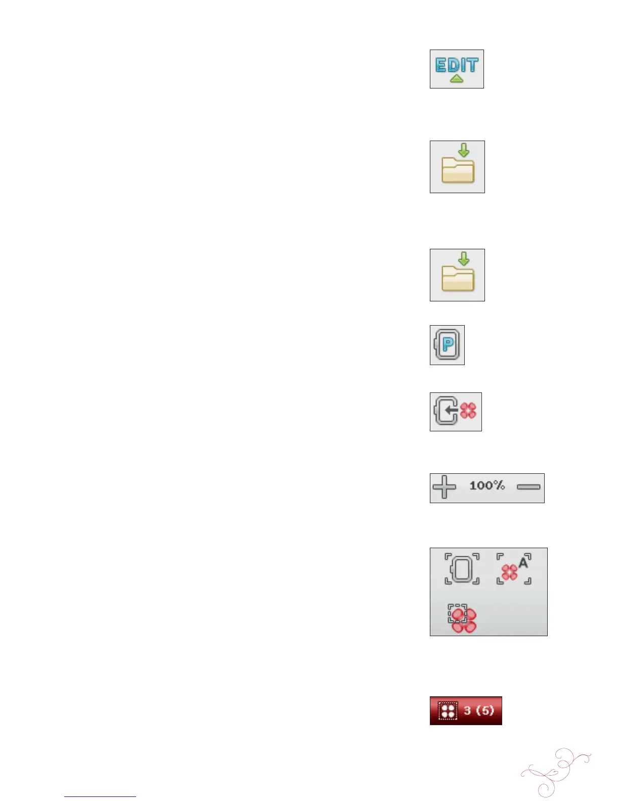 Zoom in or out of the embroidery À eld. Use Zoom In (+) to get a close-up
