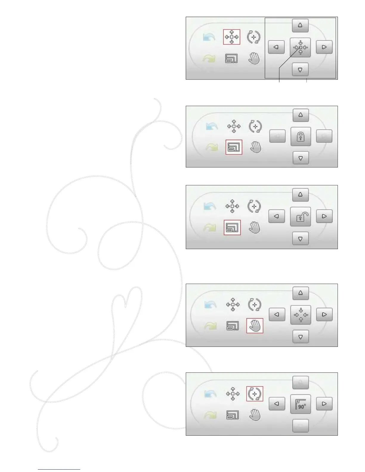 the embroidery À eld. You can Pan, Position, Rotate and Scale,