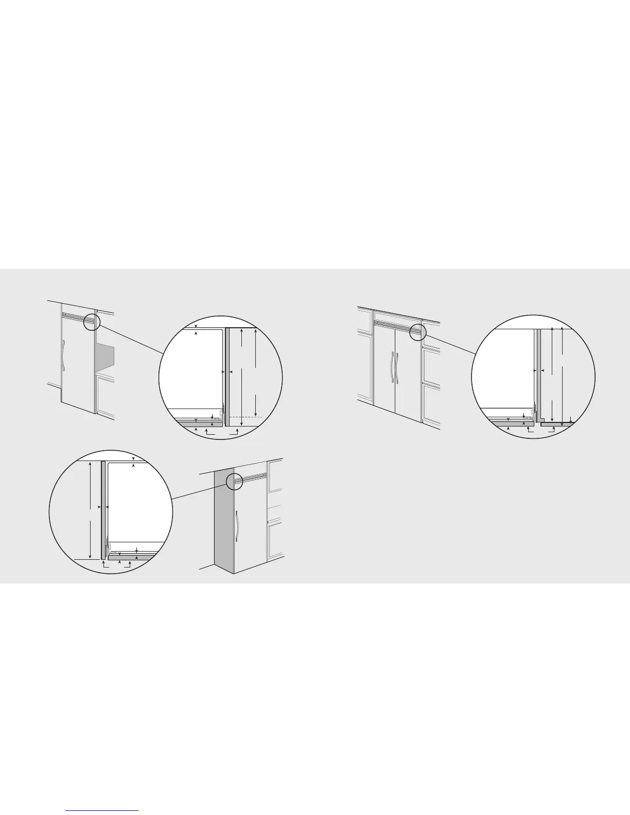 Full overlay models, (with 3/4” [1.9 cm], thick panels and custom handles locally supplied), fit flush in 25”