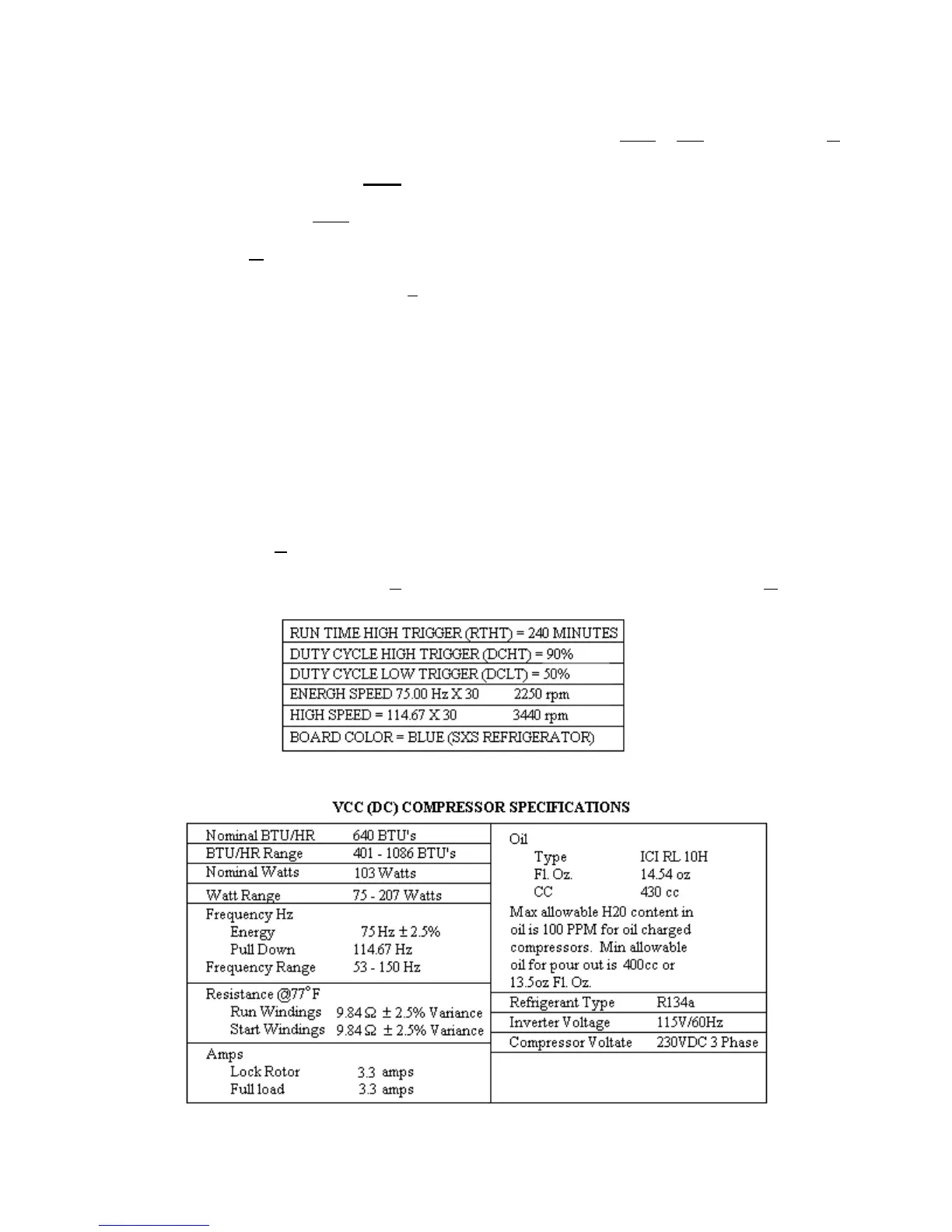• Compressor operation for more than 3 hours. The longest normal run time at 90° F is 2.5