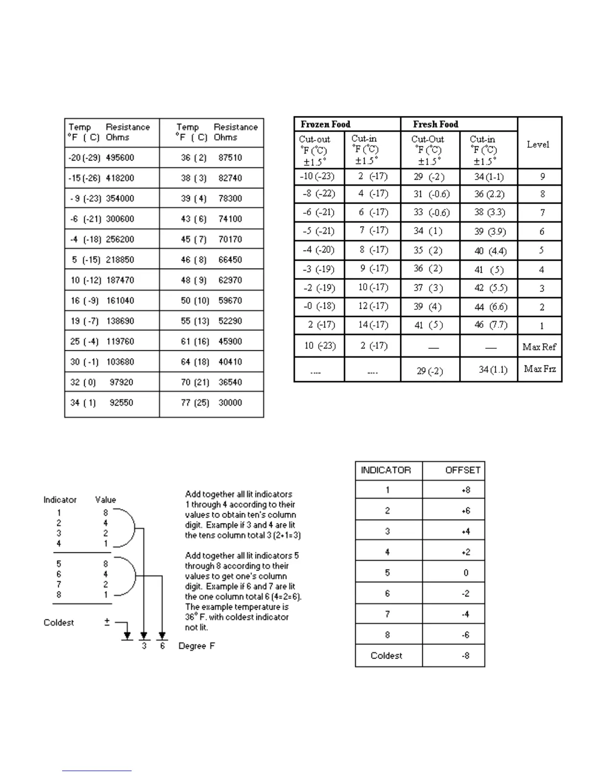Viking DFSB483D - Refrigerator; Freezer Thermister Resistance; Factory Set Freezer; Refrigerator; Reading Temperature Display; Temperature Offset Calibration
