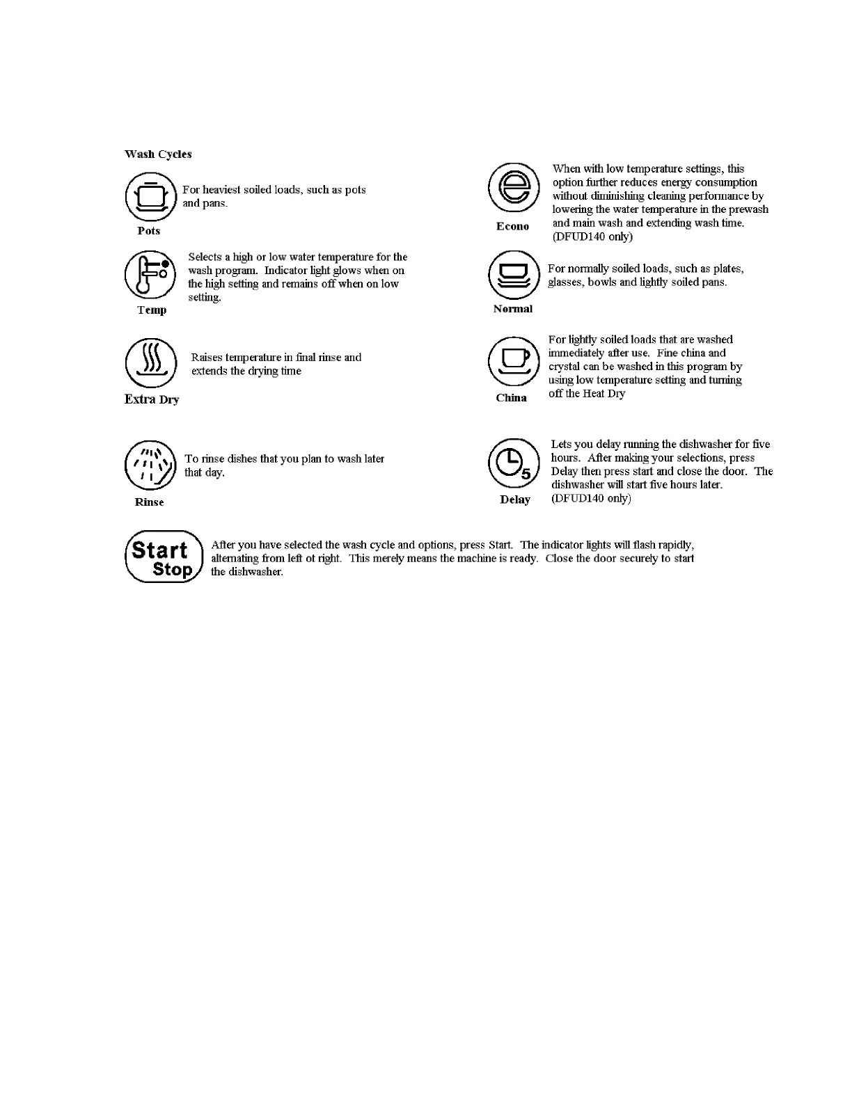 WASH / CYCLE OPTIONS DFUD040 – DFUD140 CHANGING A PROGRAM