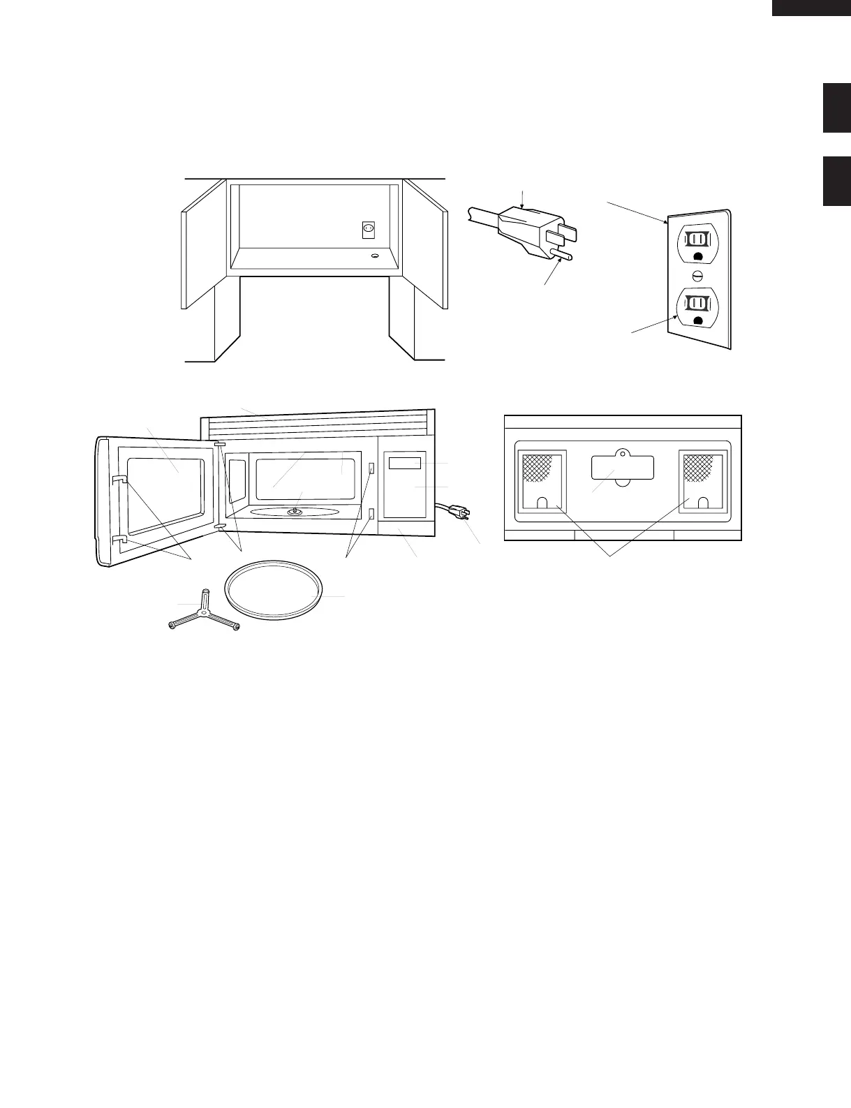 a grounded receptacle. The receptacle should be located inside the cabinet directly above the Microwave Oven/Hood system