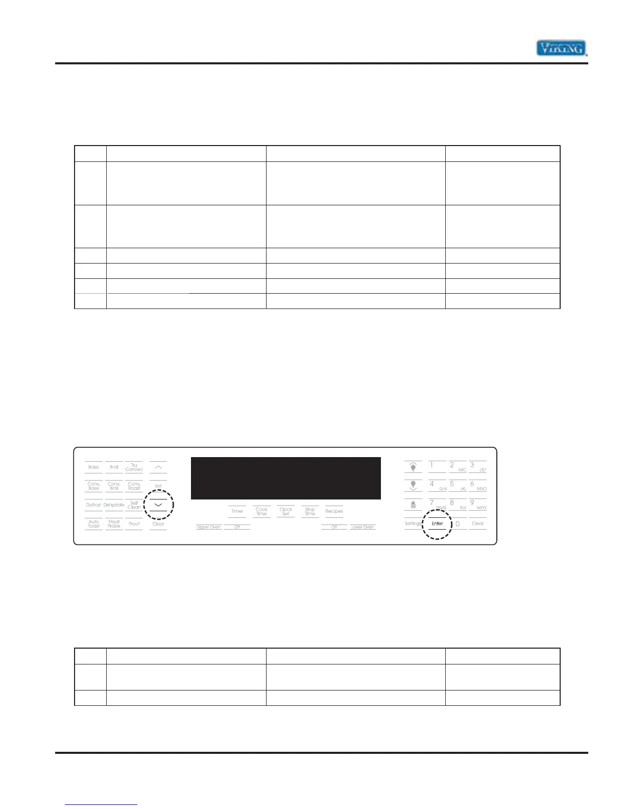 2 Lower Outer Bake Element Run bake element*** Enter, Up or Down arrow