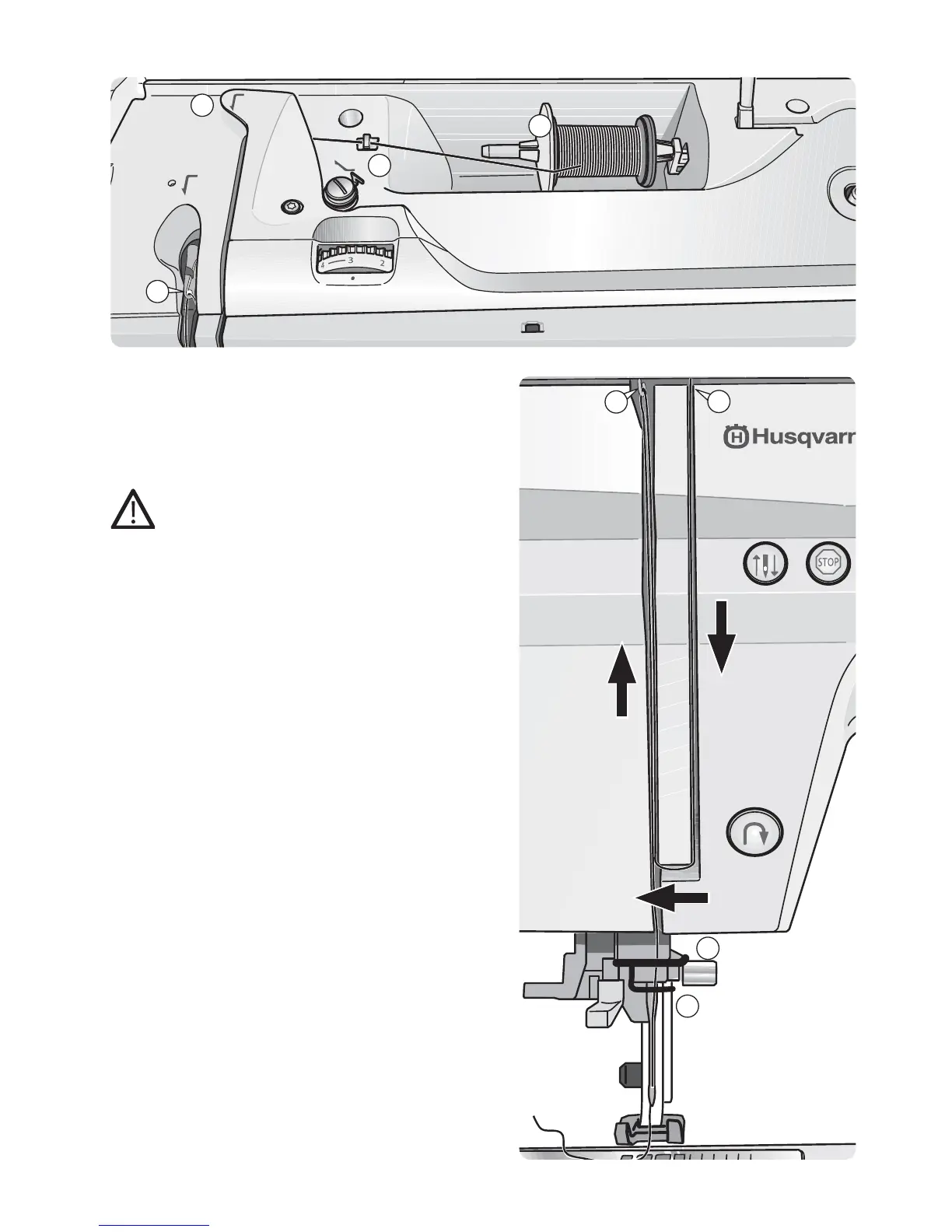 1. Pull the spool pin up. Place a spool cap and