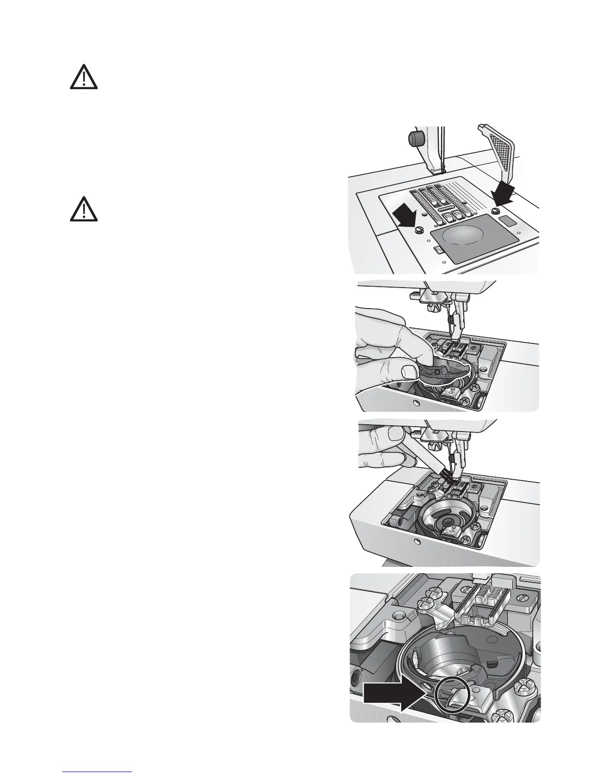 1. Remove the needle, presser foot, bobbin