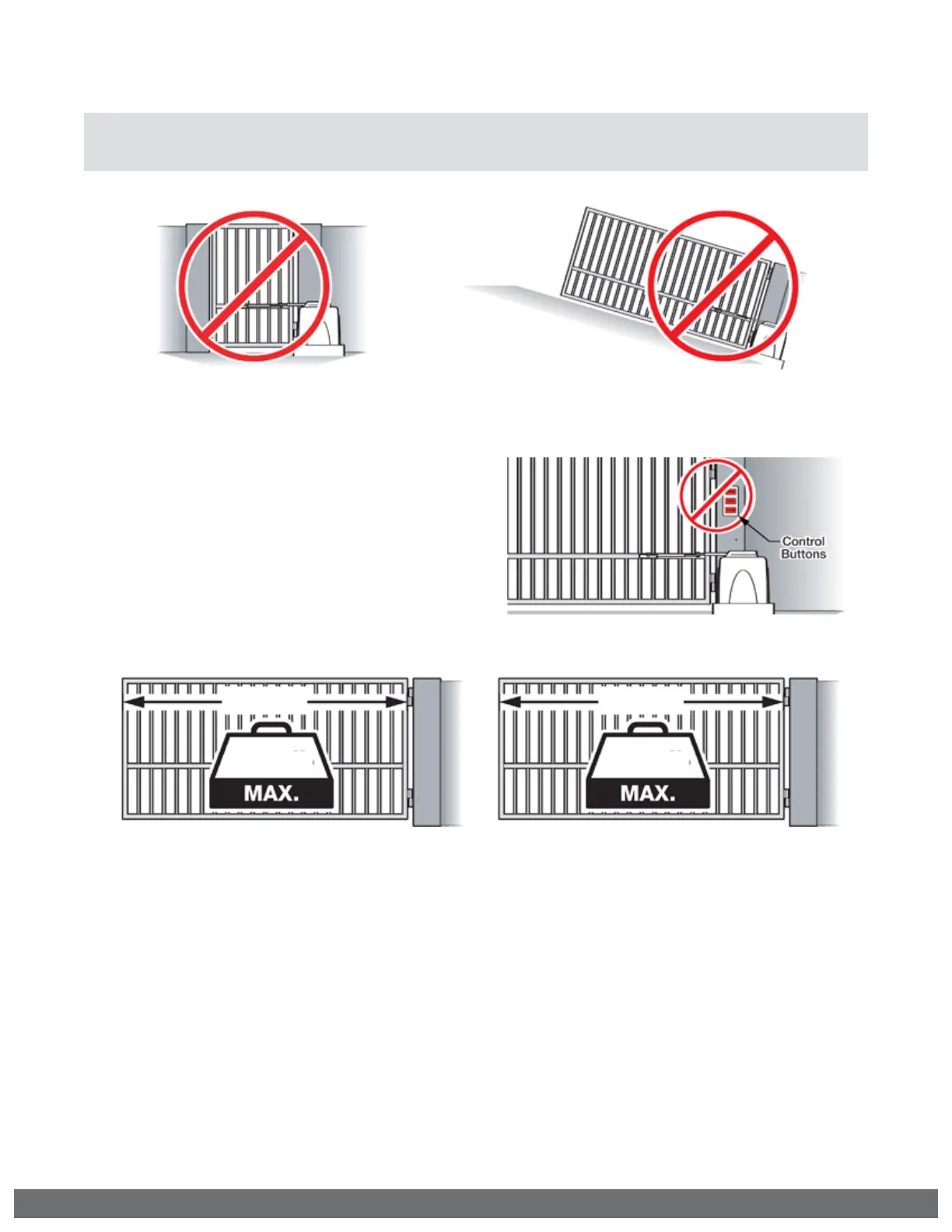 ! WARNING: For use with gates at a maximum 1500 lbs. in weight or 16 ft. in length.