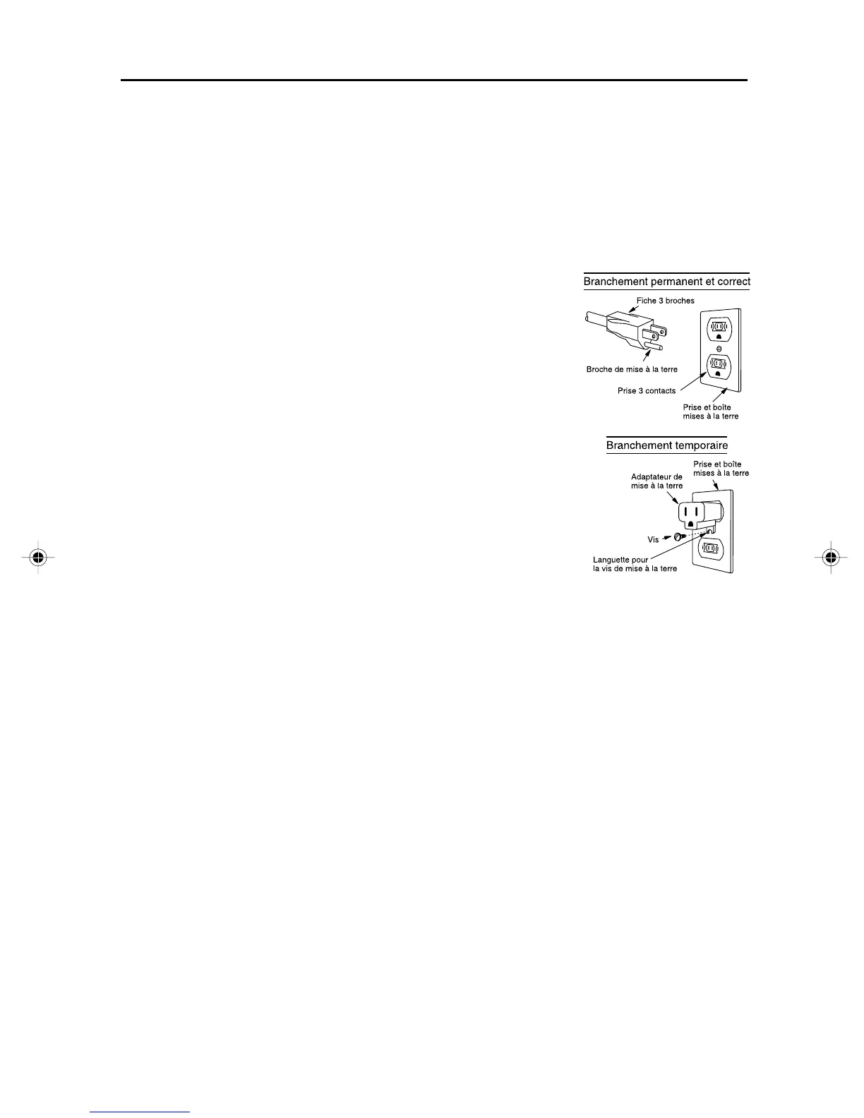 AVERTISSEMENT – Un mauvais usage de la prise de terre peut causer des chocs
