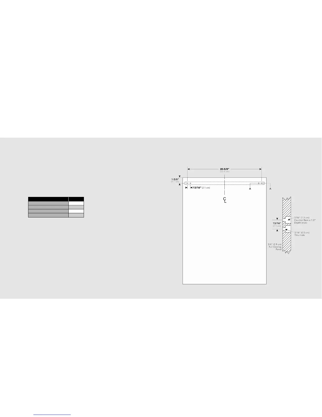 7/16” (1.1 cm) bit, counter-bore four holes 1/2” (1.2 cm) deep max. on the BACKSIDE of the