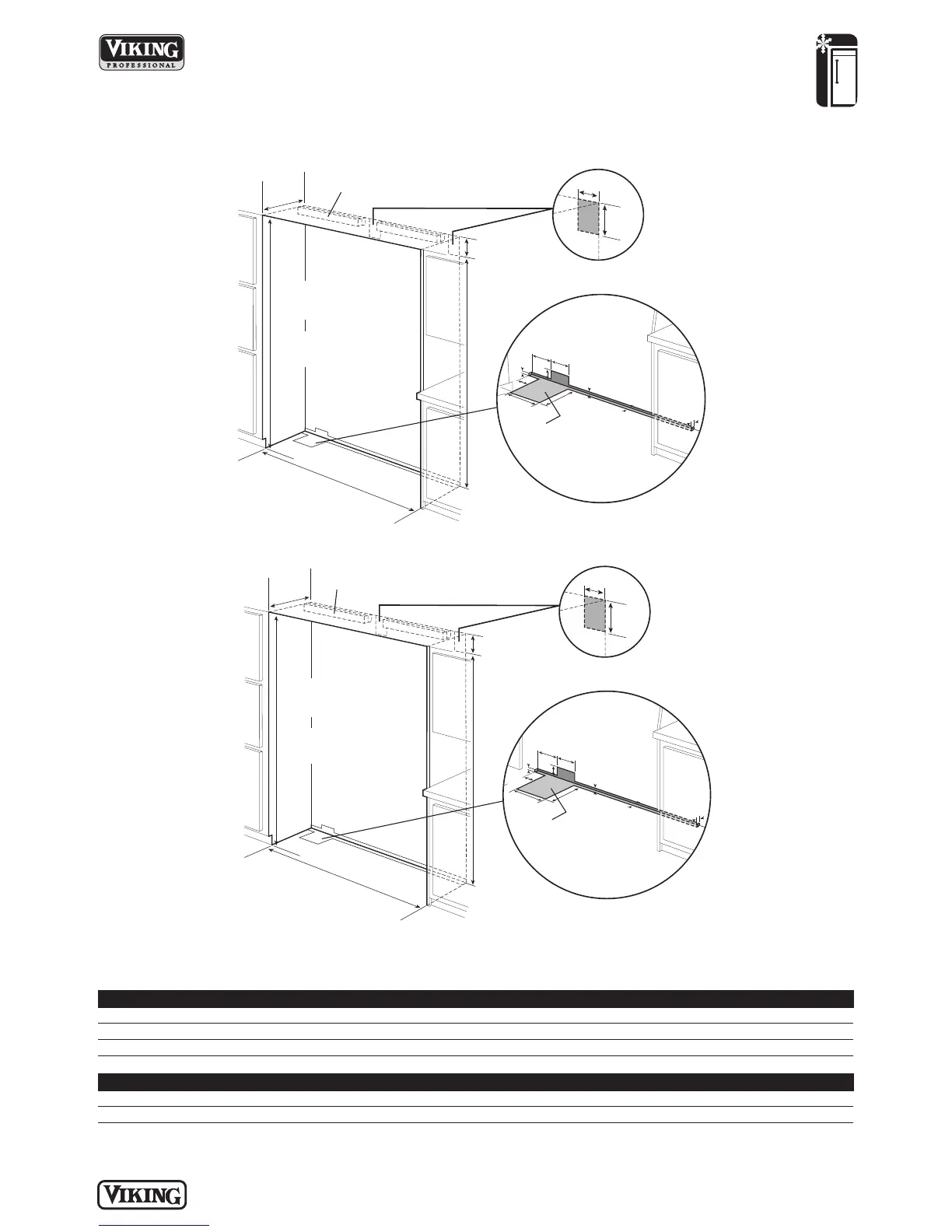 Note: cutout opening shown with All Freezer model on left.