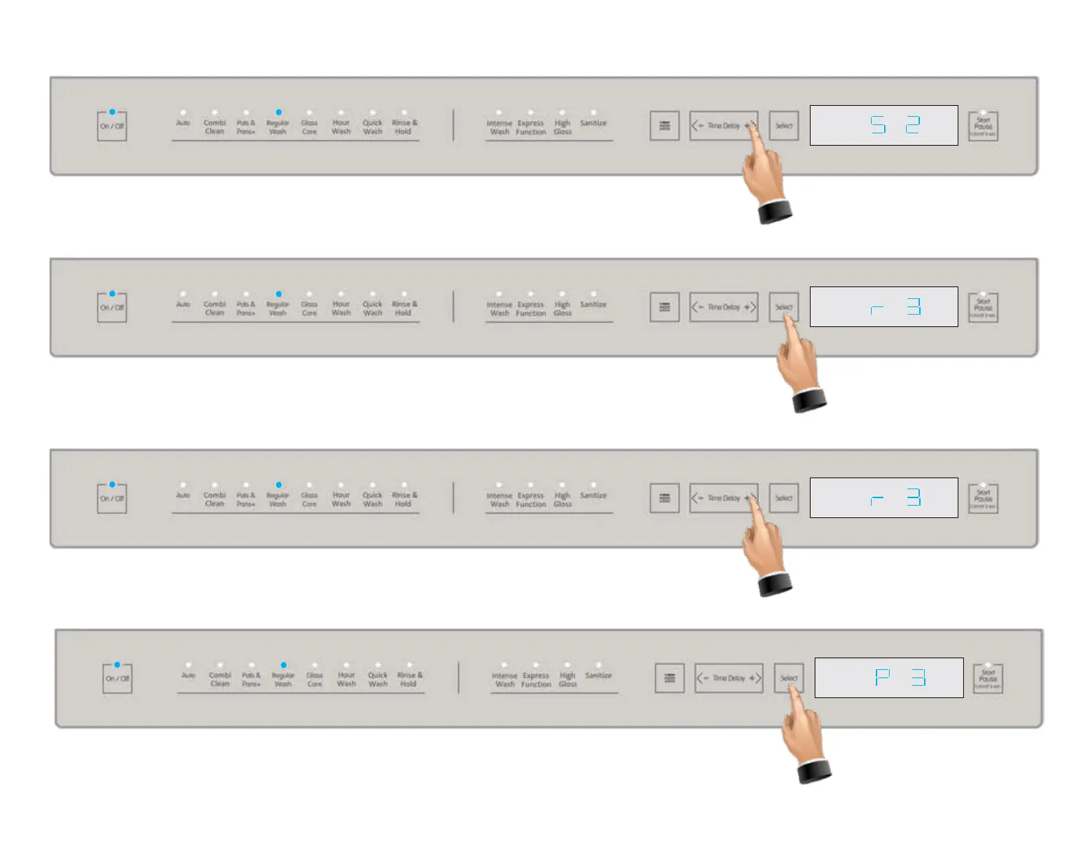 Press the Select tab to change the current setting. P0 = no rinse agent P1 = .05 ounces P2 =
