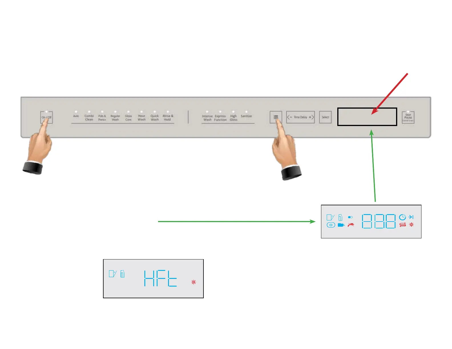 Enter the Service Menu by pressing and holding the ON/OFF pad and the MENU pad simultaneously for three seconds. The Display
