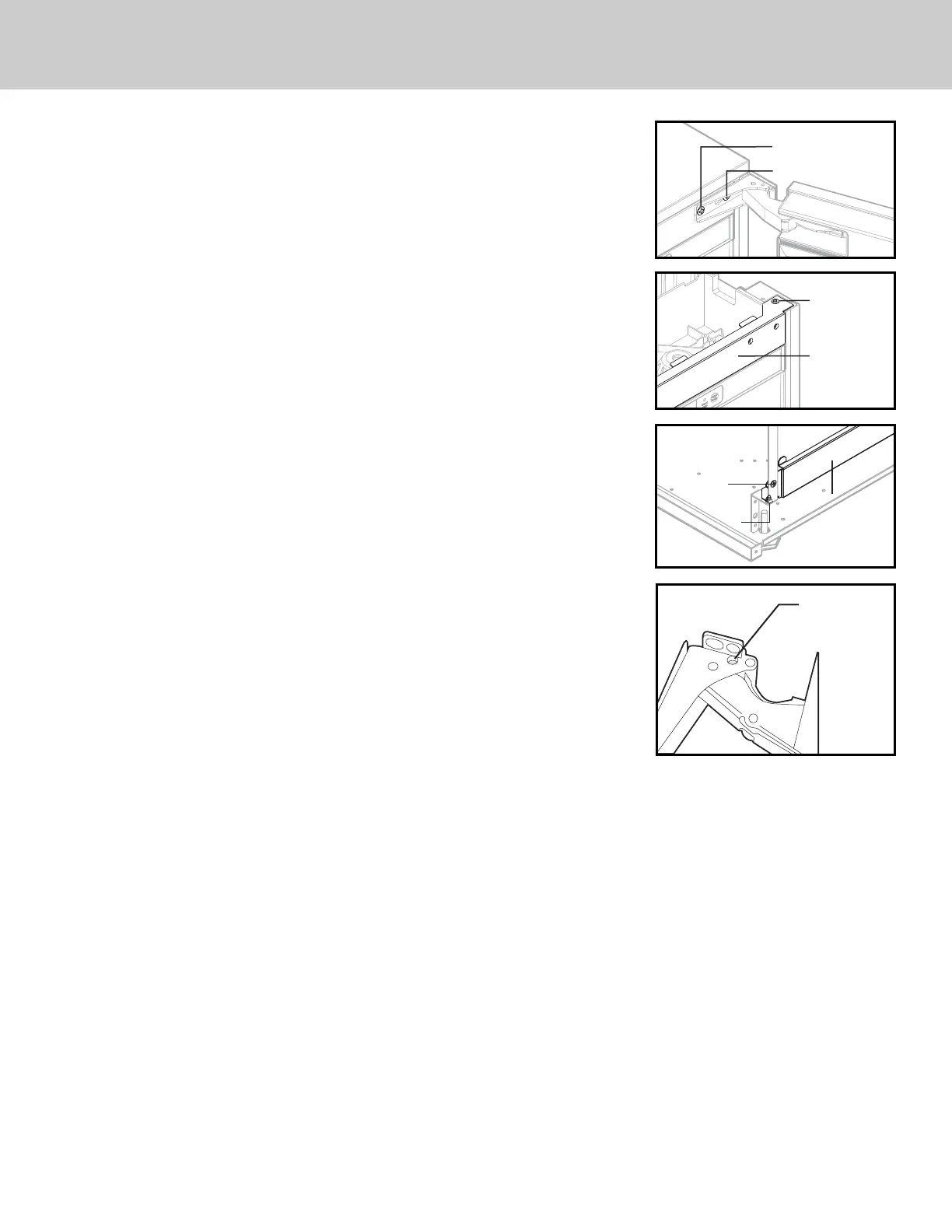 the cabinet. Replace with the left hinge upper door bracket. Fasten it to the