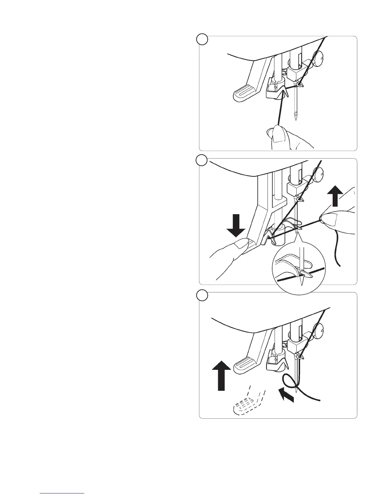 pulls the thread through the needle eye and forms a loop