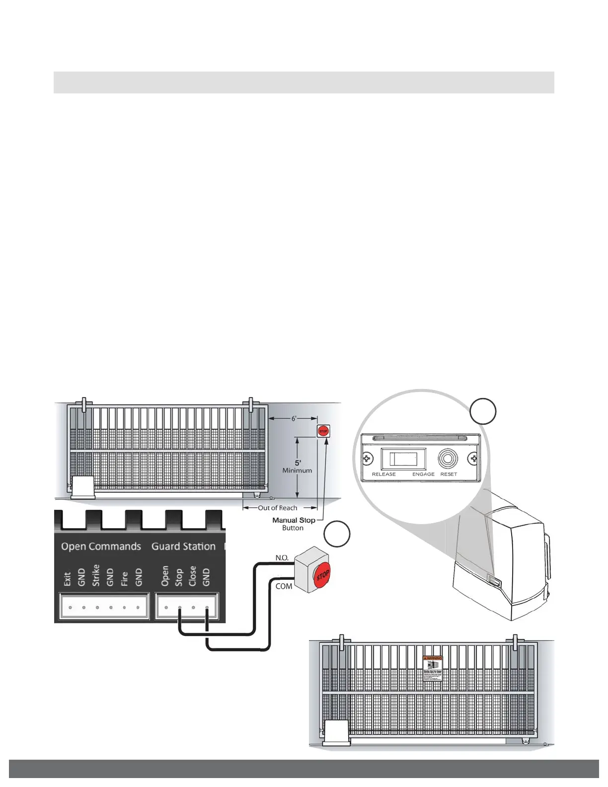 The Stop and/or Reset button must be located in the line-of-sight of the gate.