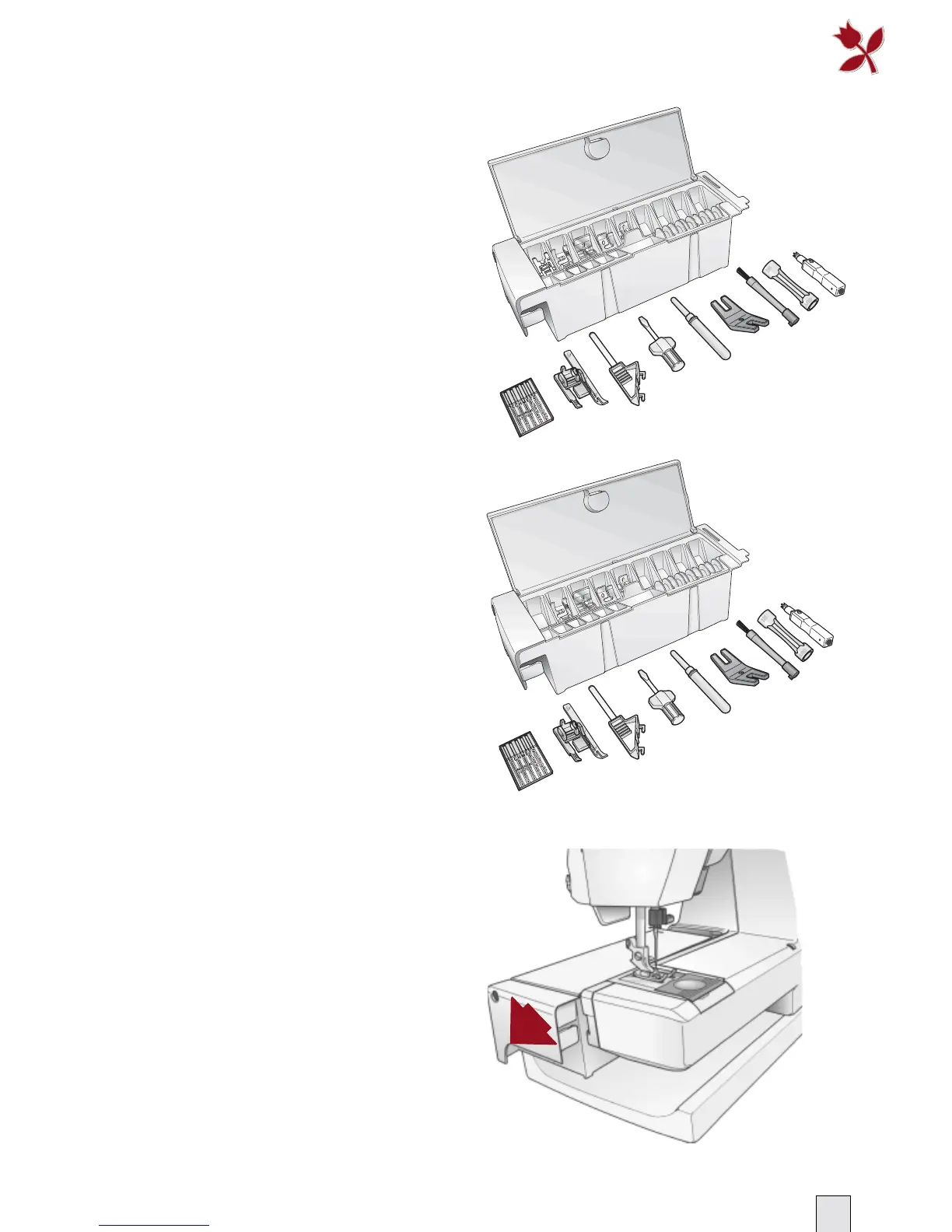 places for presser feet and bobbins plus
