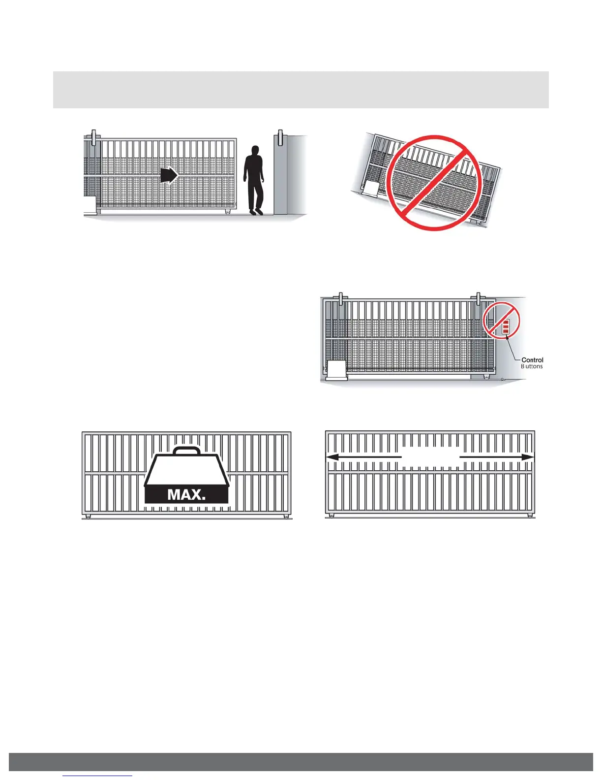 ! WARNING: For use with gates at a maximum 1600 lbs. in weight or 60 ft. in length.