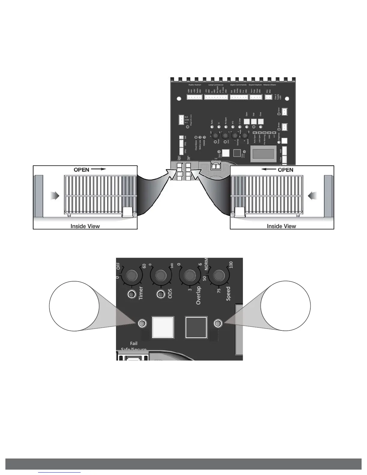 Tip: The gate can be moved electronically with the “Open”, “Stop” and “Close” buttons
