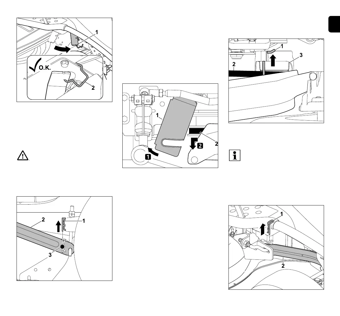 Pull out cotter pin (1) upwards.
