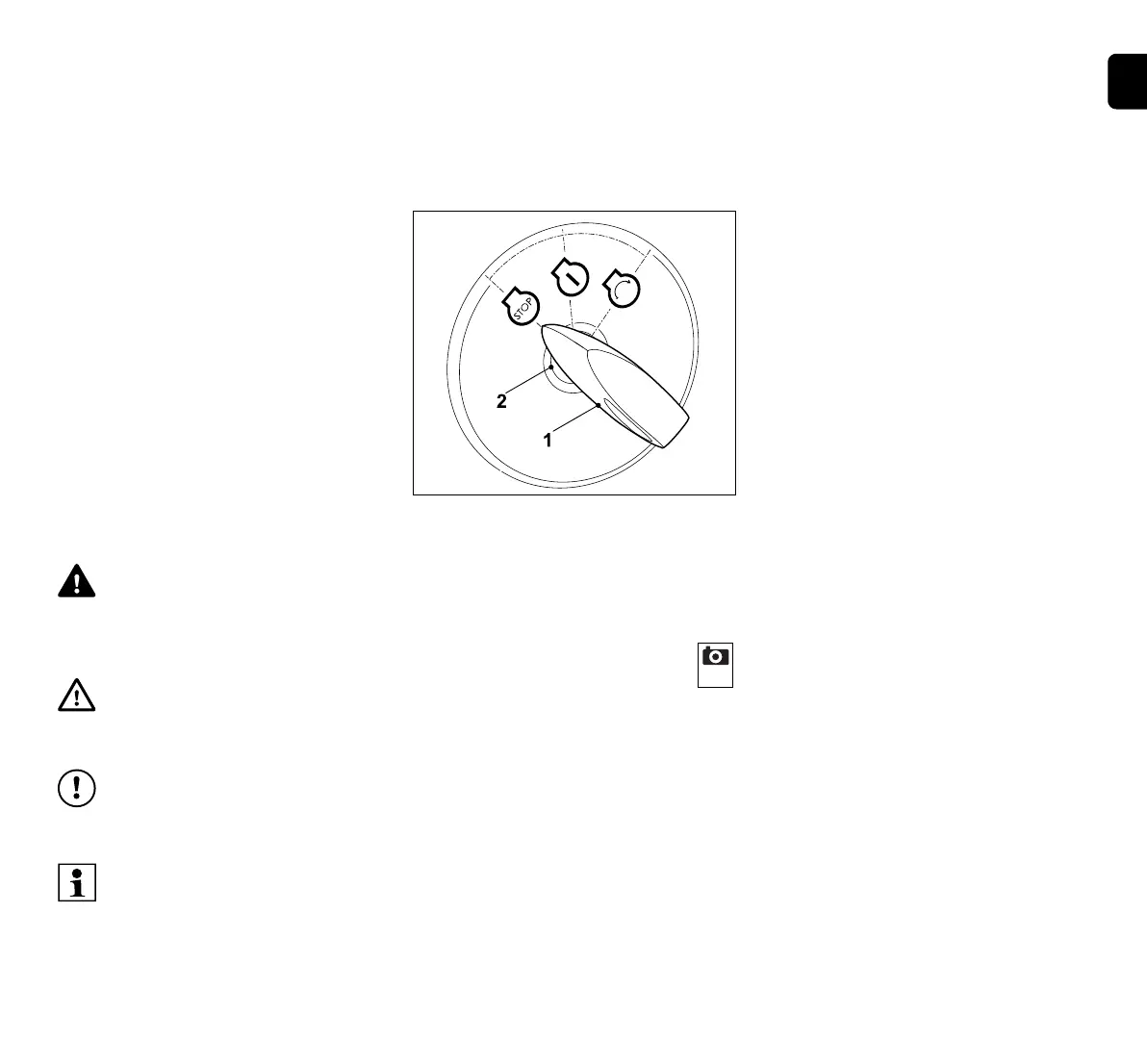 Insert ignition key (1) in ignition lock (2).