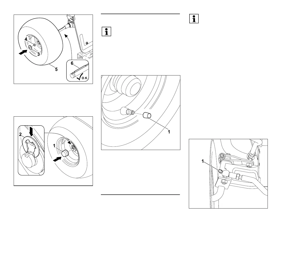 Encaixe a tampa (1) no eixo da roda.