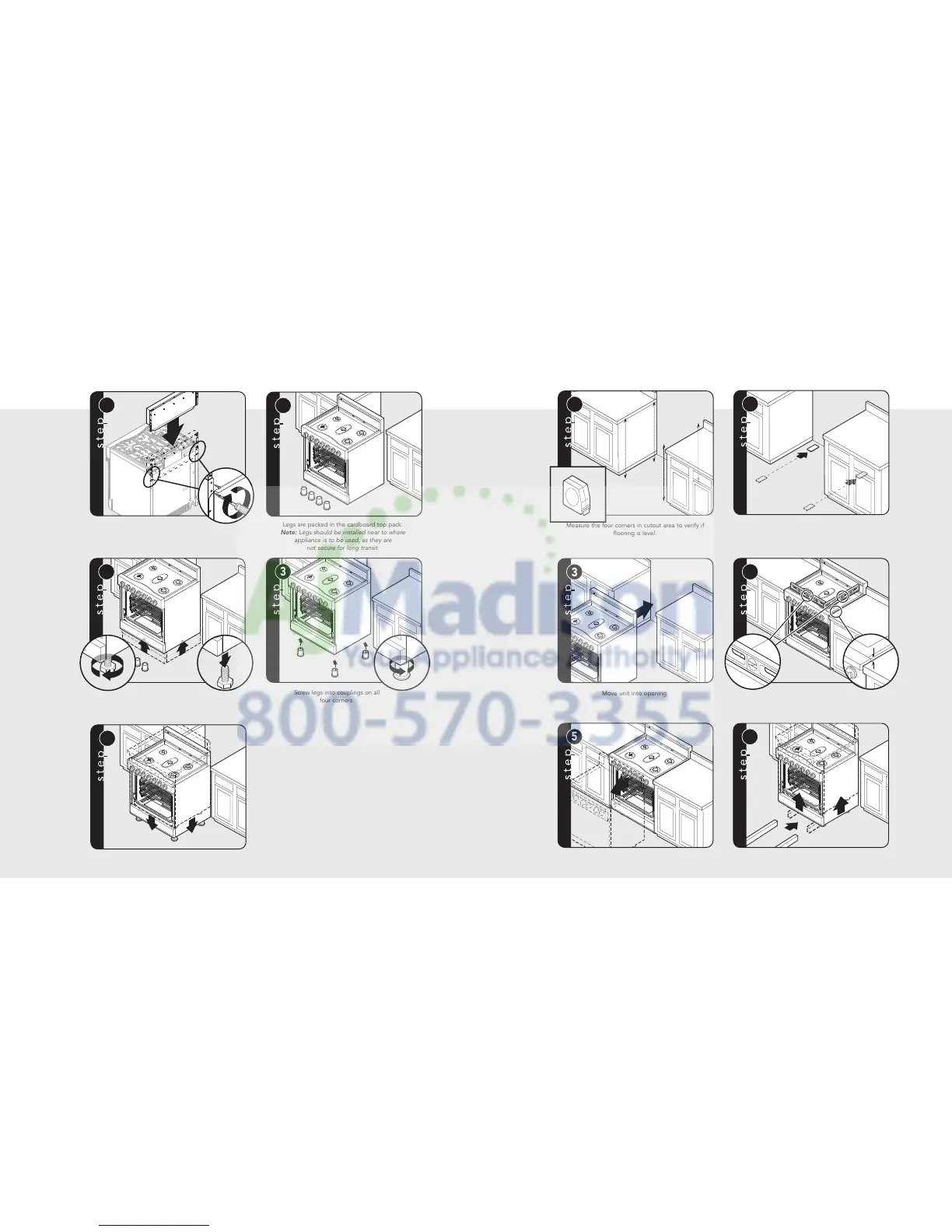 Note: Legs should be installed near to where