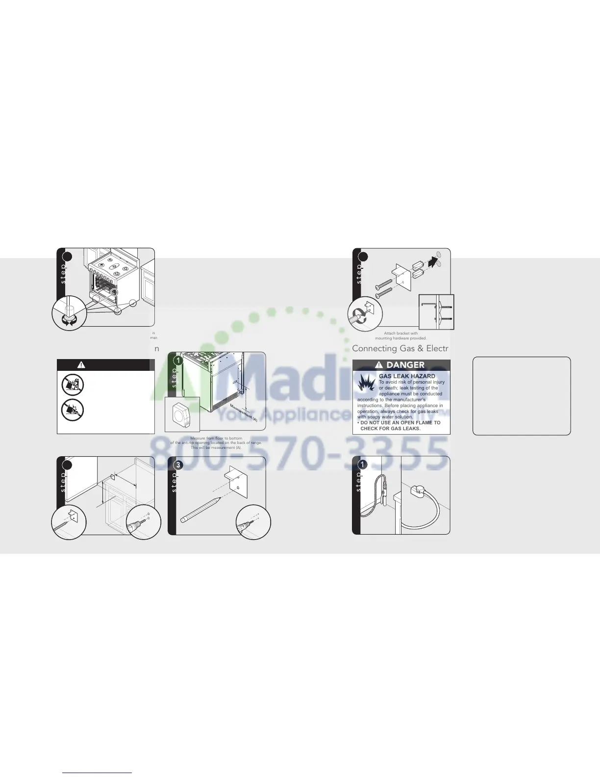 Connect gas and electrical. Before placing appliance in operation,