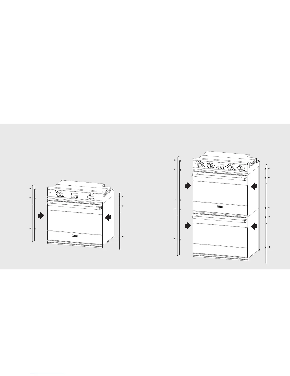 2. Install the two flush mount trim pieces to the oven (see diagram for single and double oven