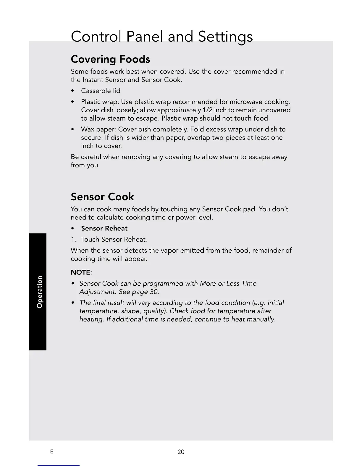 Viking RVM320SS - Covering Foods; Sensor Cook; Sensor Reheat