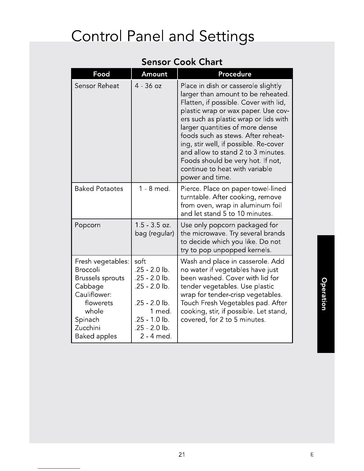 Viking RVM320SS - Sensor Cook Chart