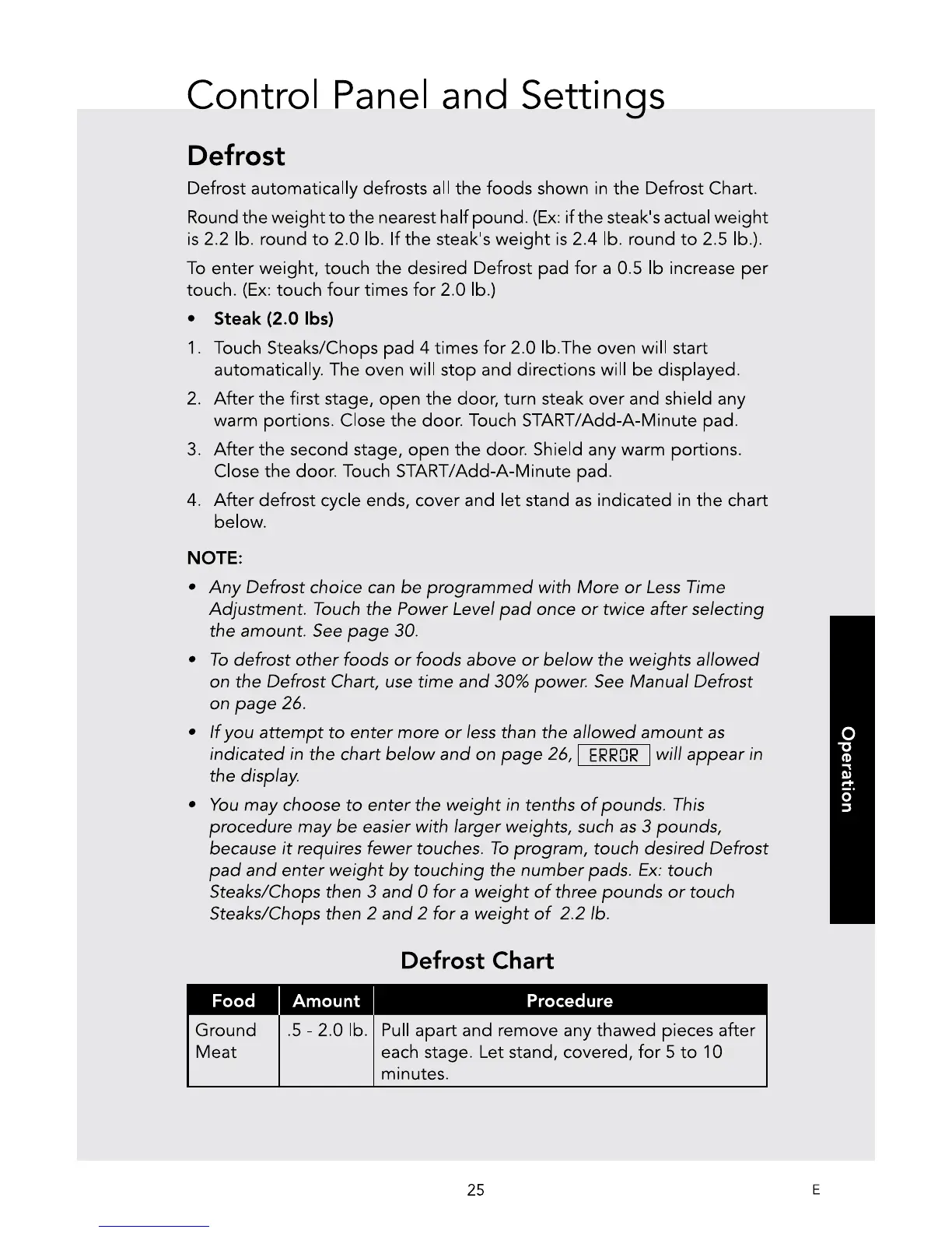 Viking RVM320SS - Defrost; Defrost Chart