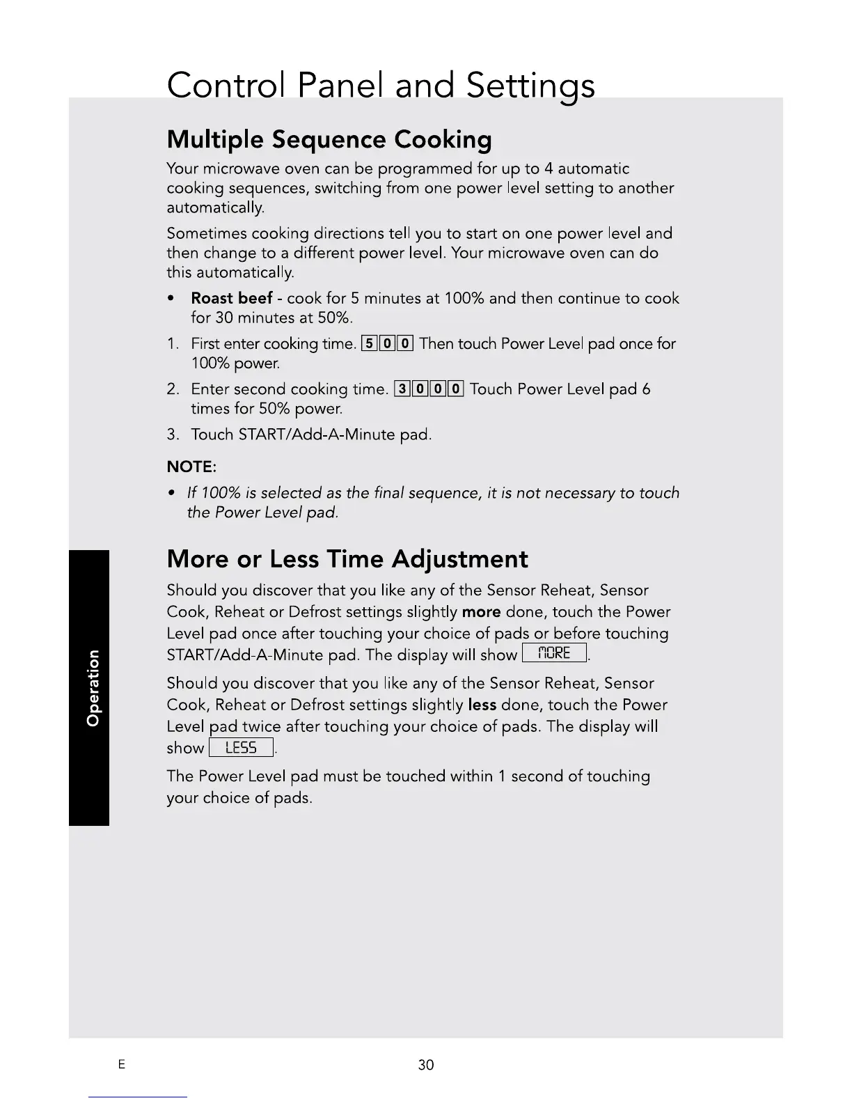 Viking RVM320SS - Multiple Sequence Cooking; More or Less Time Adjustment