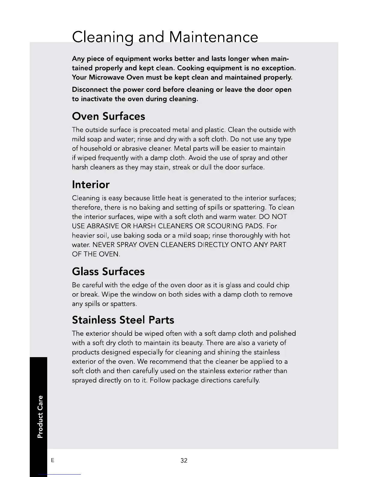 Viking RVM320SS - Cleaning and Maintenance; Oven Surfaces; Interior; Glass Surfaces
