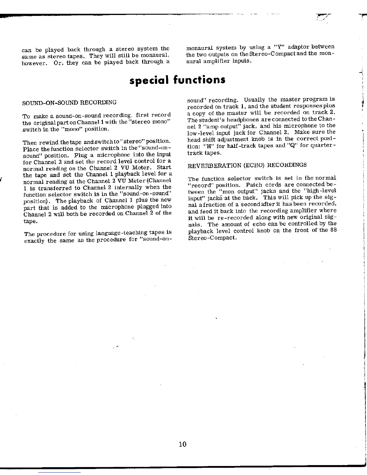 Viking Stereo-Compact 88 - Special Functions; Sound-on-Sound Recording; Reverberation (Echo) Recordings