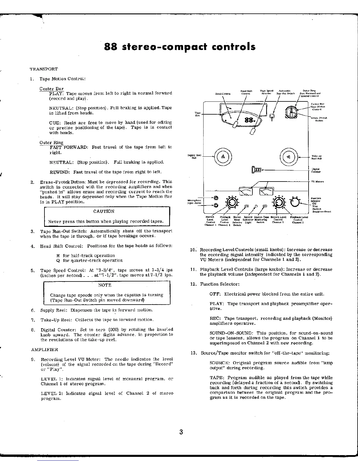 Viking Stereo-Compact 88 - 88 Stereo-Compact Controls; Transport and Operation Controls; Level and Monitoring Controls