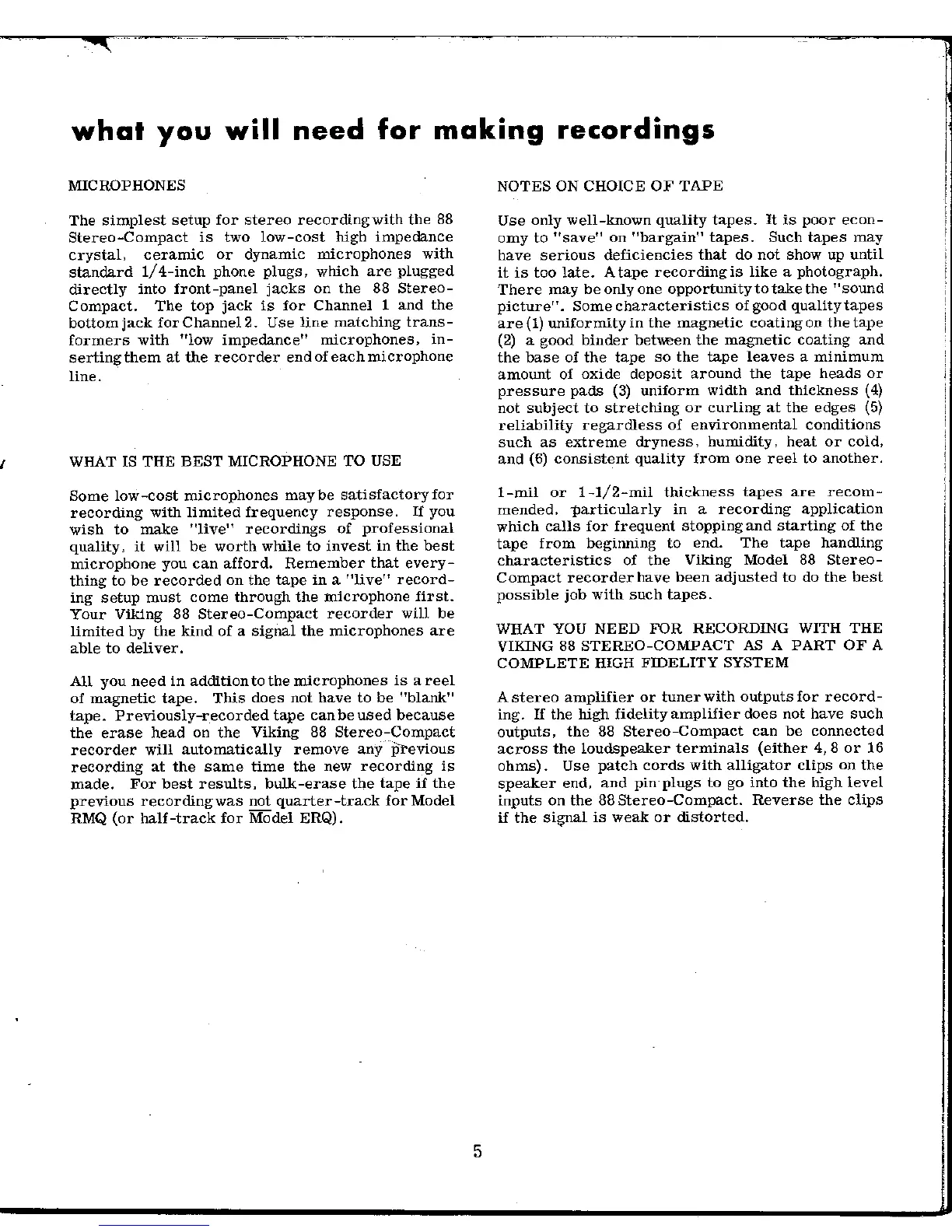 Viking Stereo-Compact 88 - Making Recordings; Microphone Usage and Tape Selection; Recording with a High Fidelity System